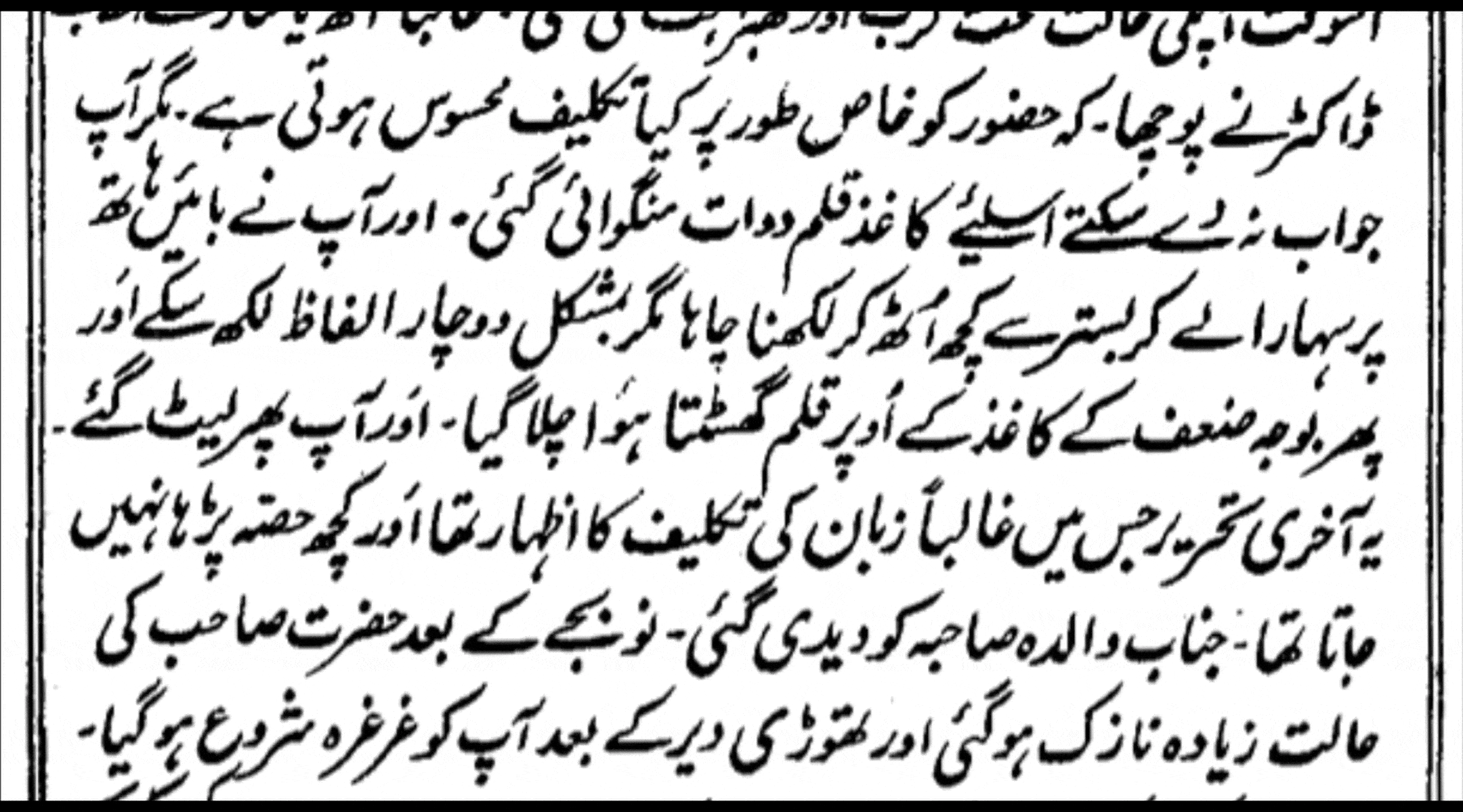 میں نے دیکھا کہ آپ کے منہ سے گو نکل رہا تھا اور گو کے ساتھ خون بھی شامل تھا