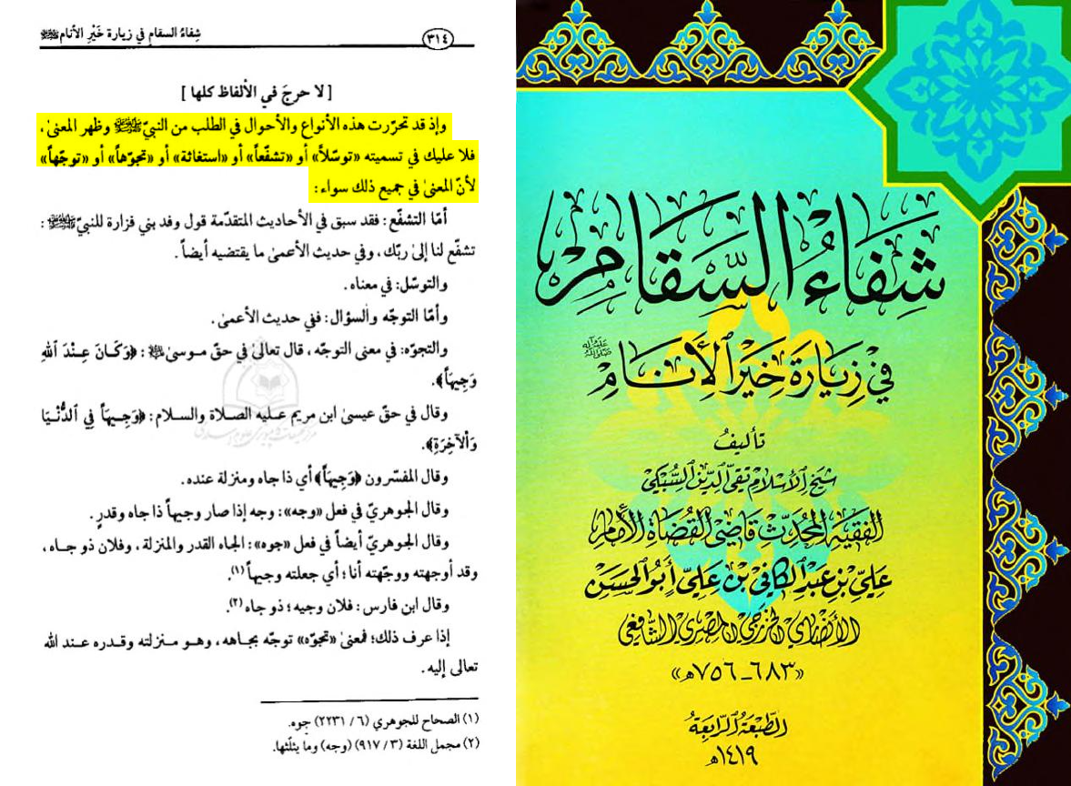 Some people might object that there is a difference between seeking intercession (tashaffuʿ) and istighātha (seeking aid), and therefore argue that what Gangohi practiced was not istighātha and thus not shirk. However, what they fail to understand is that Taqi al-Din al-Subki (d. 756 AH) has already clarified that there is no meaningful difference between such terms. He explained that whether it is tashaffuʿ or istighātha, they essentially refer to the same concept: