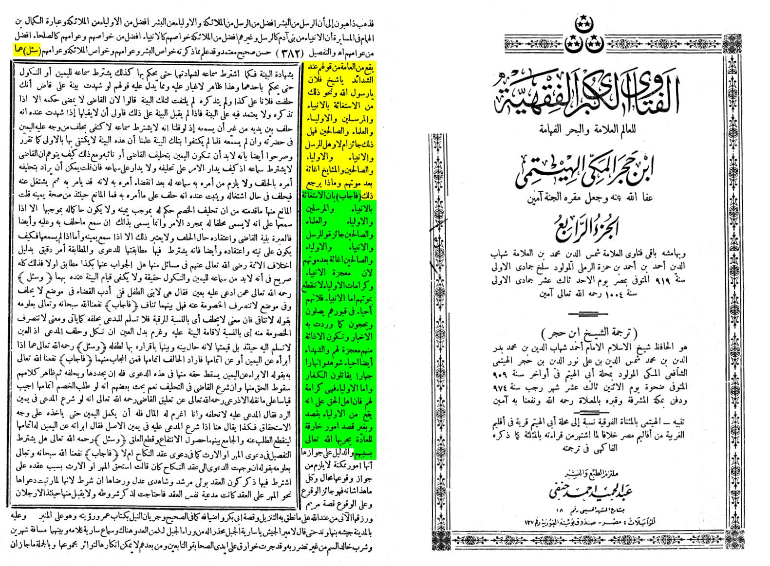 [Al-Fatawa al-Kubra al-Fiqhiyyah wa bi-Hamishihi Fatawa al-Ramli, vol 4, 382]