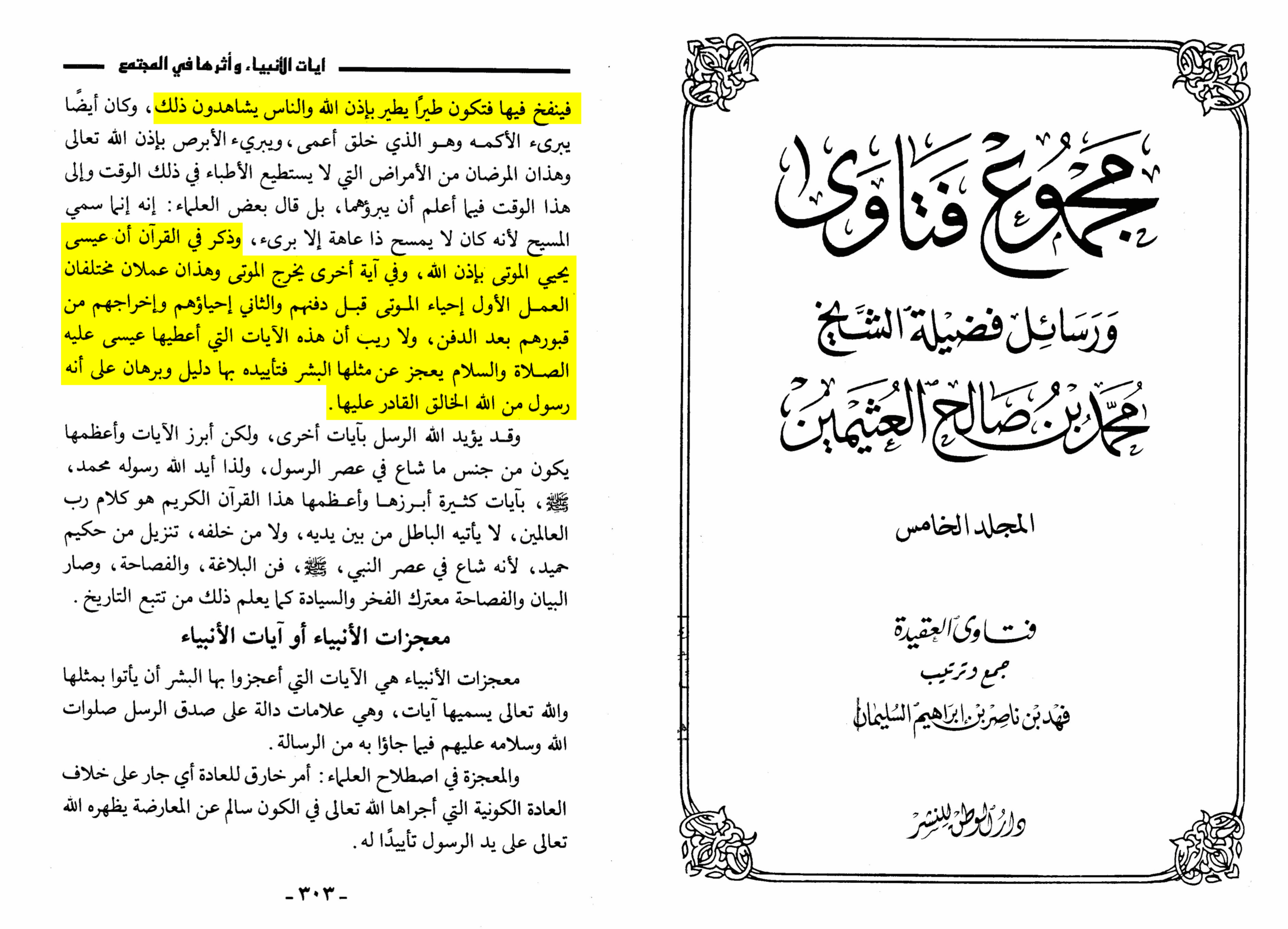 Salafīs believe that ʿĪsā (عليه السلام) has the power to create life, such as making birds from clay and giving them life, and that he can revive the dead. For instance, their renowned scholar Ibn Uthaymīn (d. 1422H) affirms this belief by stating: