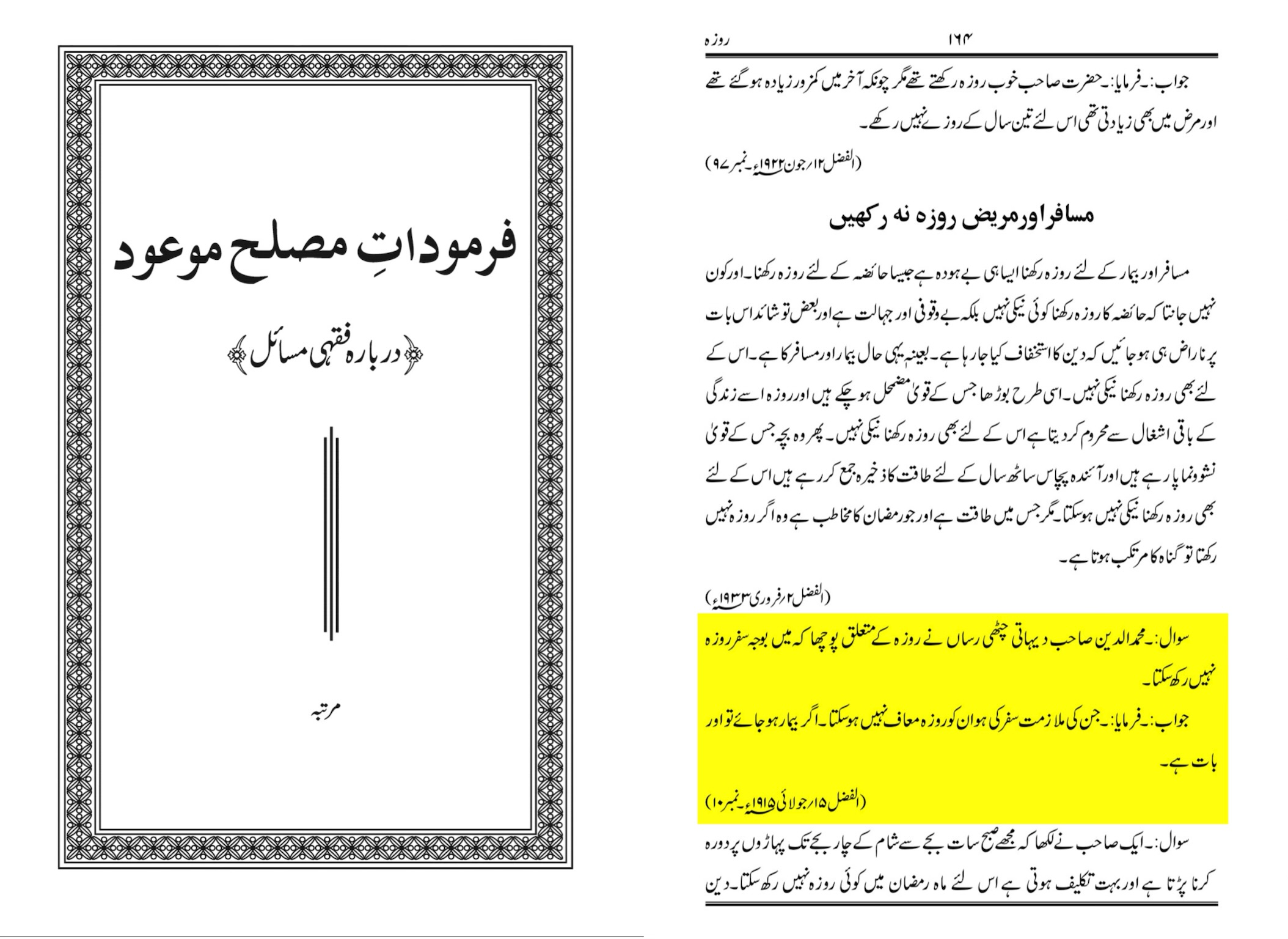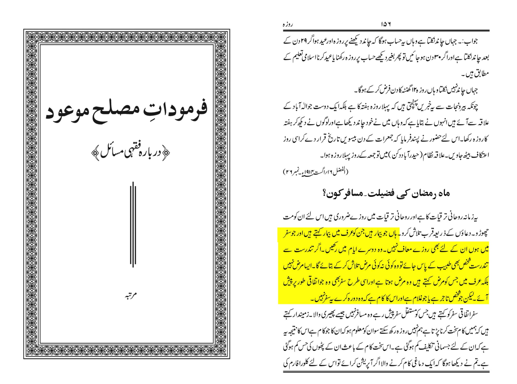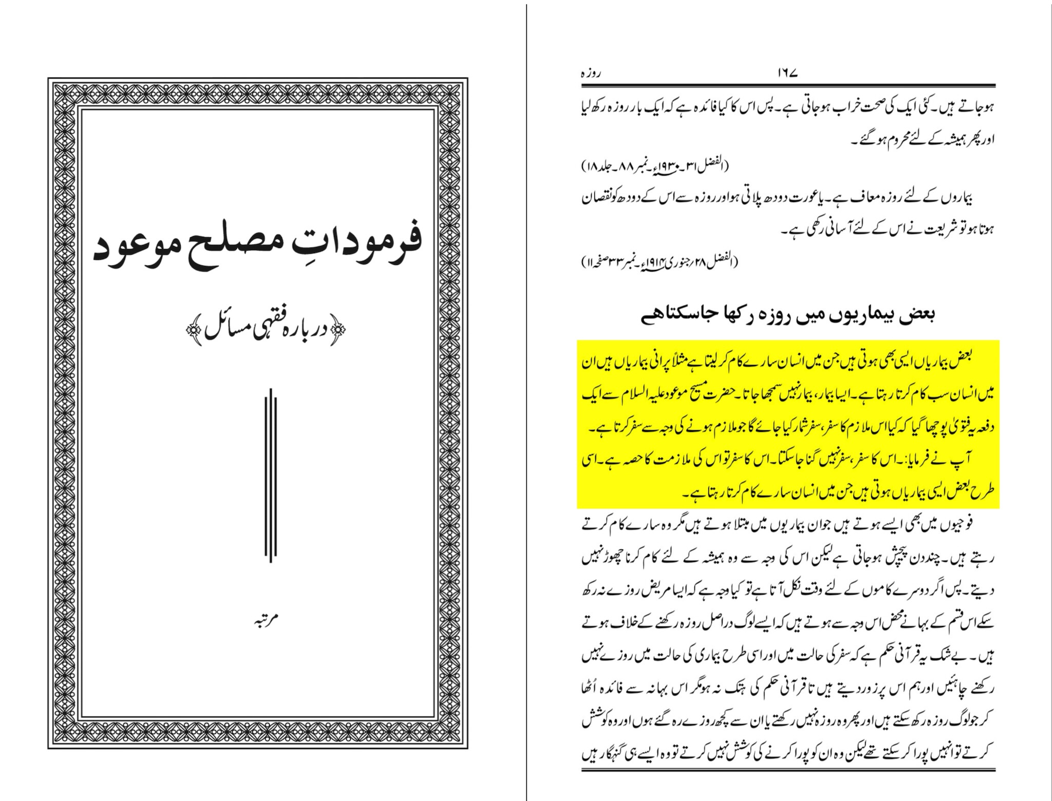 Hazrat Muleh Mau’ood(ra) mentions upon whom fasting is obligatory during Ramadan and states: