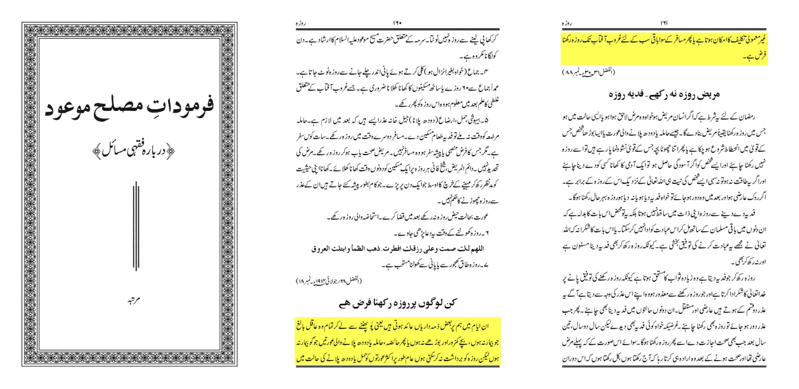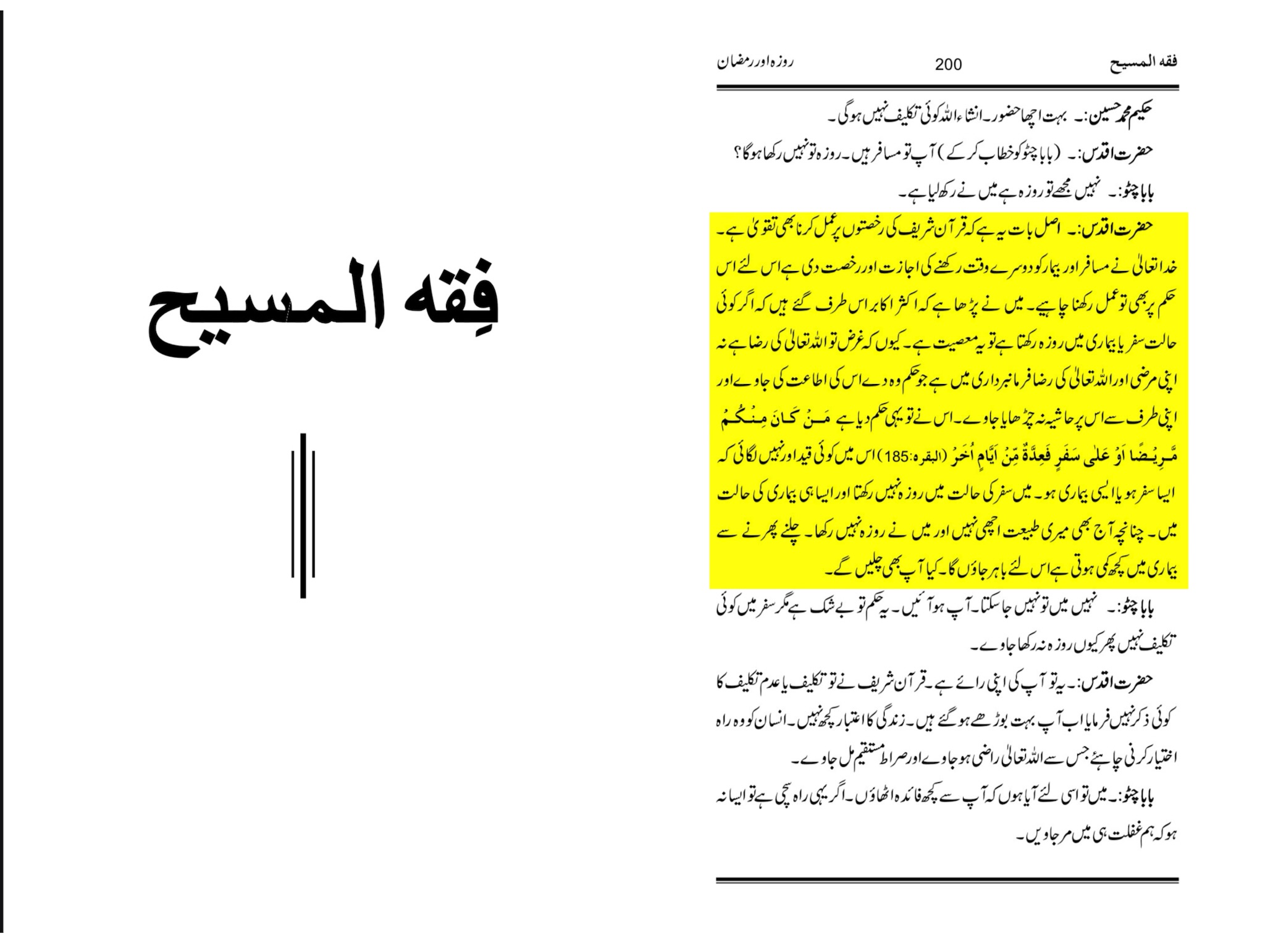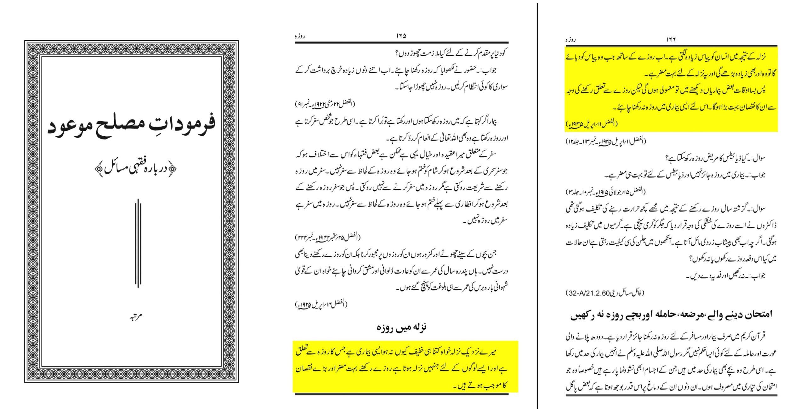 Hazrat Muleh Mau’ood(ra) mentions upon whom fasting is obligatory during Ramadan and states: