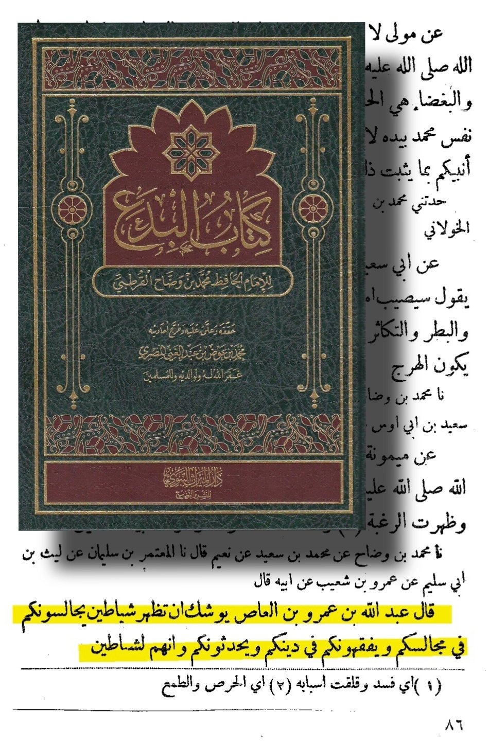 He also quotes a hadith from Abdullah ibn ‘Amr ibn al-‘As in this book who was one of the first companions to write down the sayings of our beloved Prophet ﷺ. This hadith refers to the latter day scholars as ‘devils’: