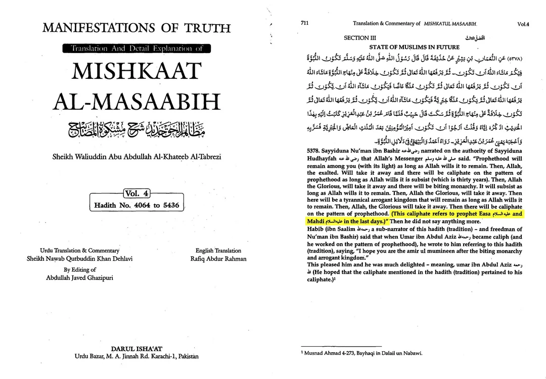 - 4) Khilafat ala’ minhaj al-nabuwwah (Khilafat-e-Masih) [Musnad Ahmad, 4/273, #18596]